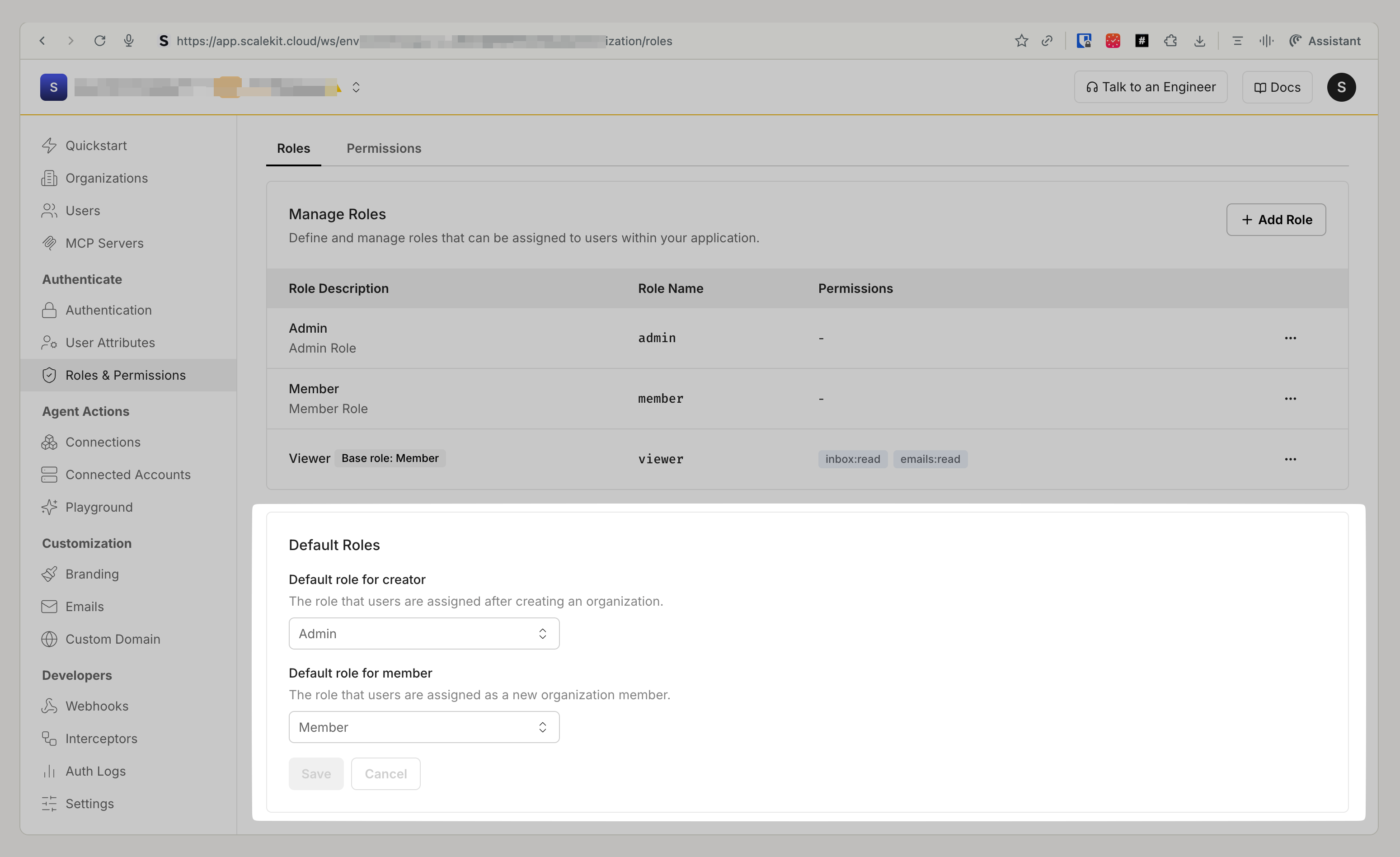 This automatically assigns these roles to every users who joins any organization in your Scalekit environment.